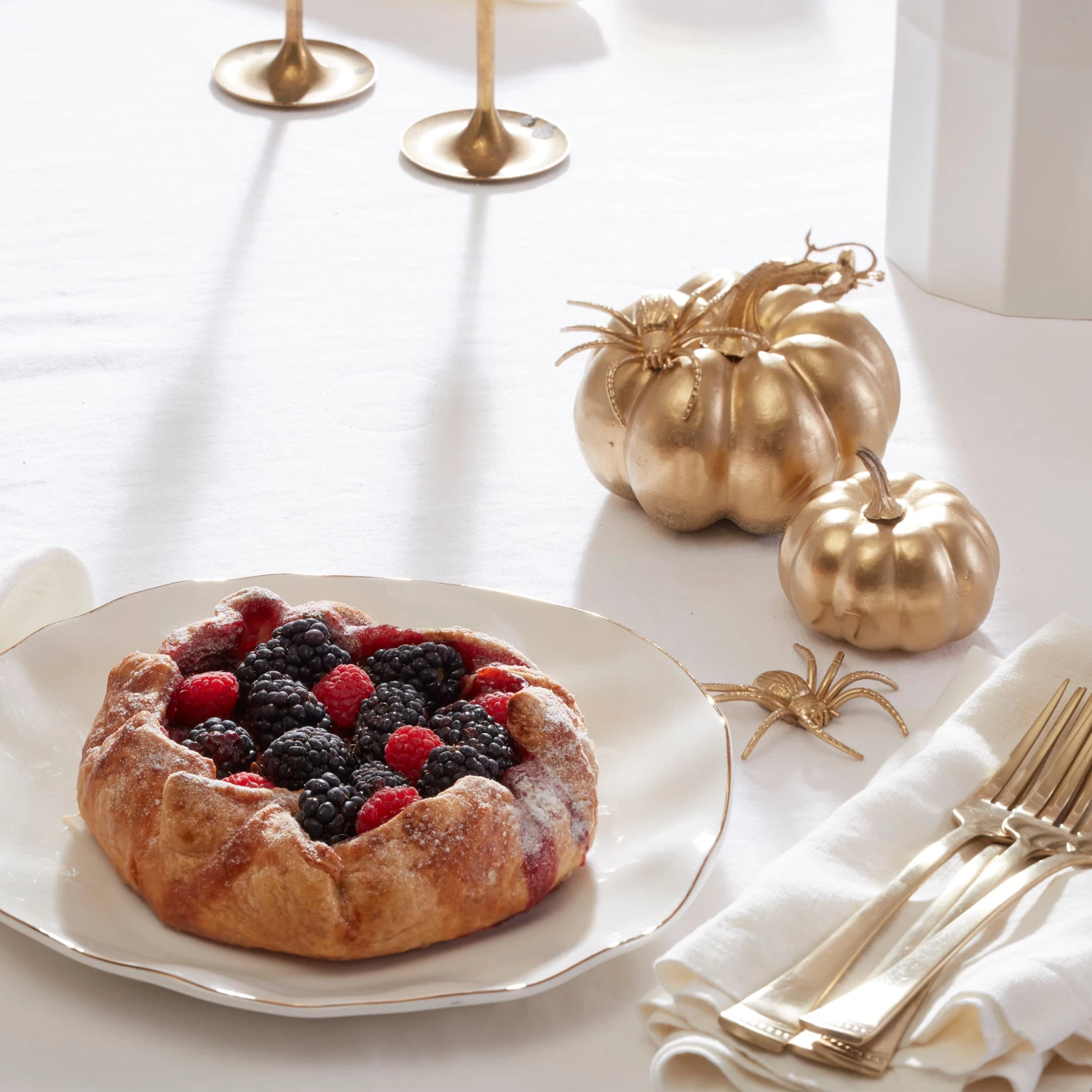 Get everything you need with the Blue Bay 12-piece dinnerware set in creamy white. Mix this set with your current Blue Bay collection or match with your dinnerware favorites! This set includes dinner plates, dessert plates and bowls, so that you can serve everything from the main course to after-dinner treats. This sweetly simple set features a thin gold rim on each piece for a unique accent and it’s both dishwasher and microwave safe!