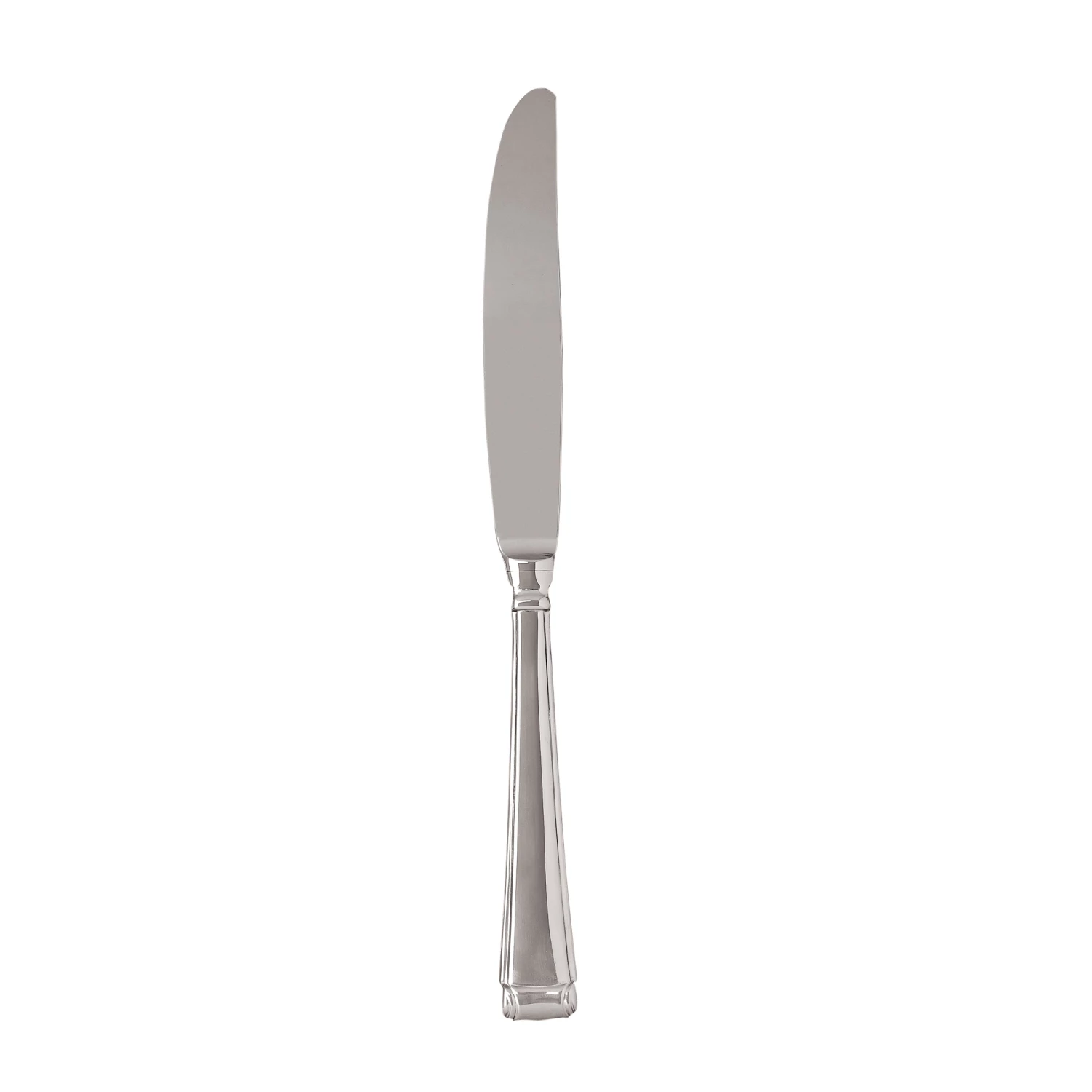 Inspired by Federal-period architecture, this dinner knife from Gorham’s Column collection adds a refined touch to both casual and formal dining. Crafted from 18/10 stainless steel, it features a mirror finish and a polished design with a double band at the top of the handle and a simple scroll at the bottom.