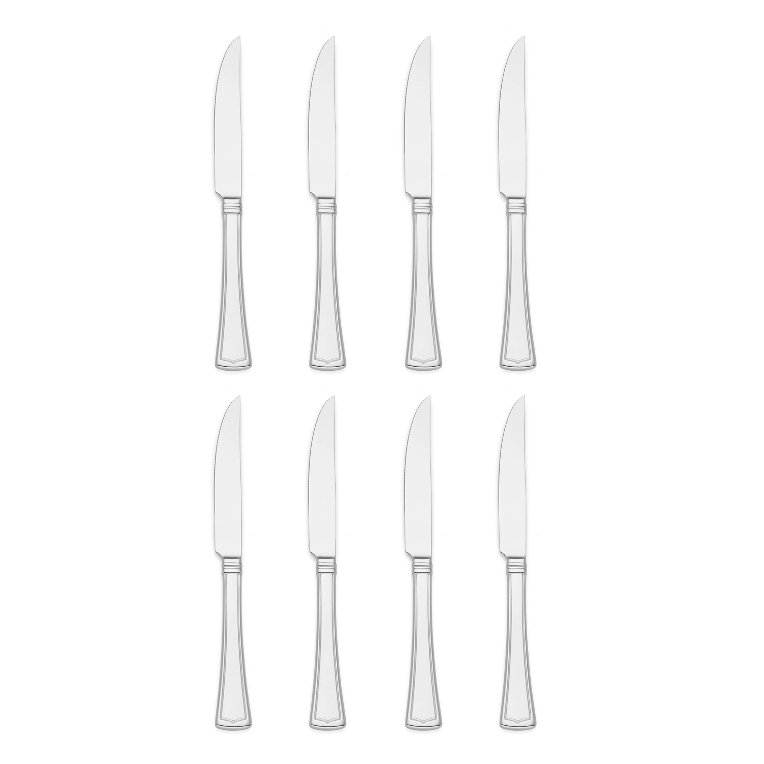 Complete your table with these sleek Fonthill steak knives. This 8-piece set is crafted of rust-resistant, 18/10 stainless steel to maintain its shine every year. A sloping elegant outline creates a border around the narrow handles. These steak knives are dishwasher safe for added convenience.