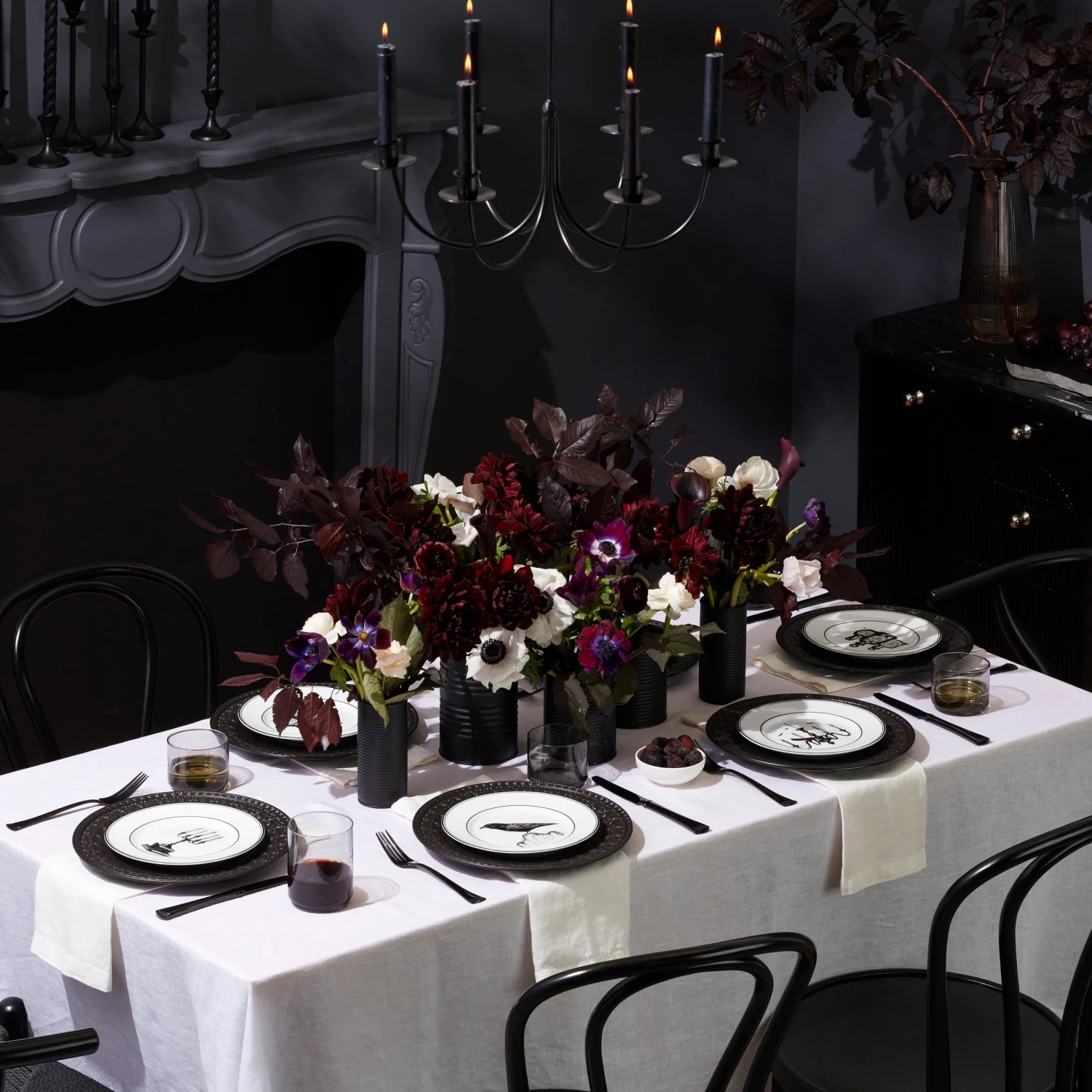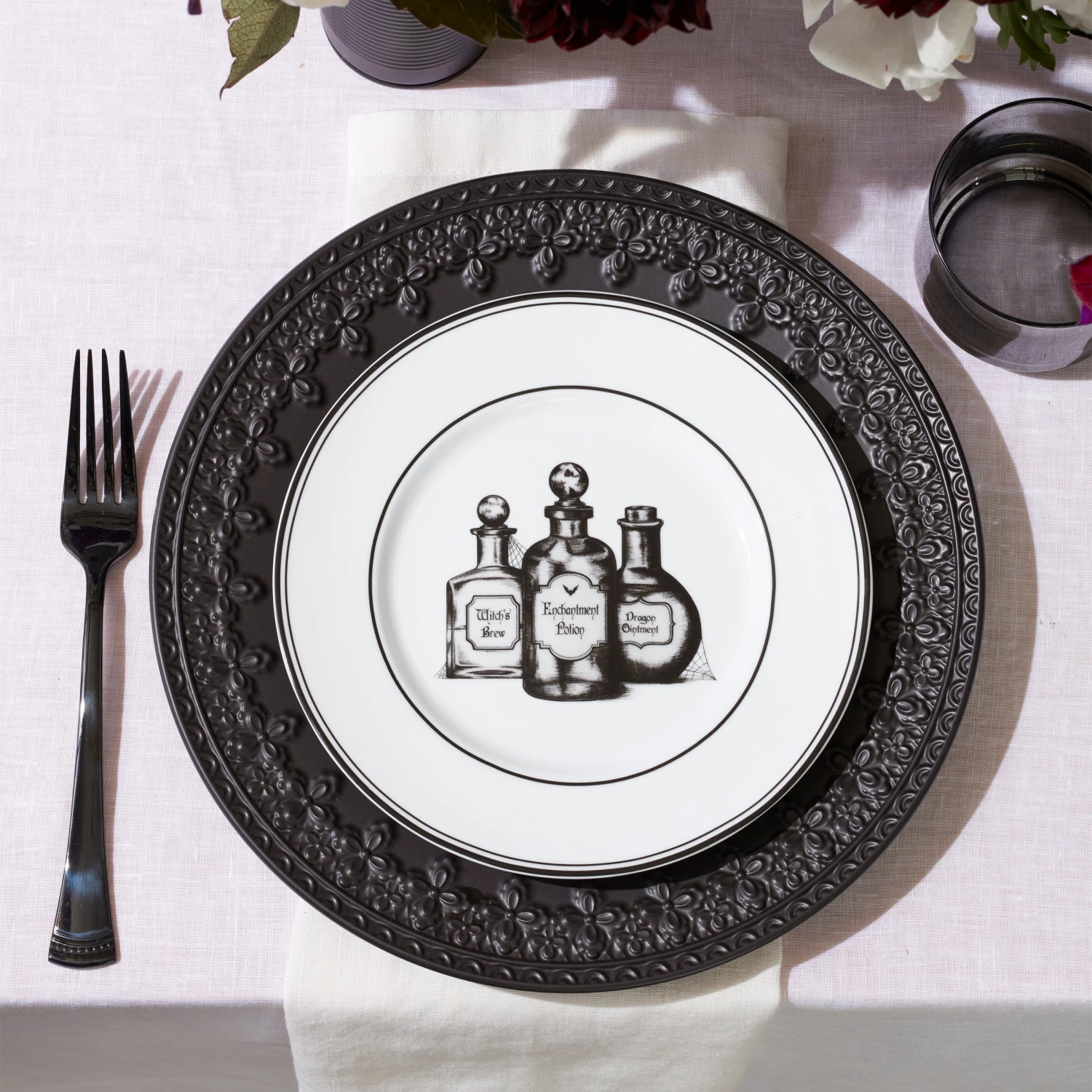 A wickedly enchanting assortment, our Vintage Halloween collection brings a bit of haunted mystery to your home. This 4-piece dessert plate set is crafted of ivory porcelain and features hand-drawn artwork of a chandelier, a raven, potions and a candelabra. It’s perfect for serving treats this Halloween season!