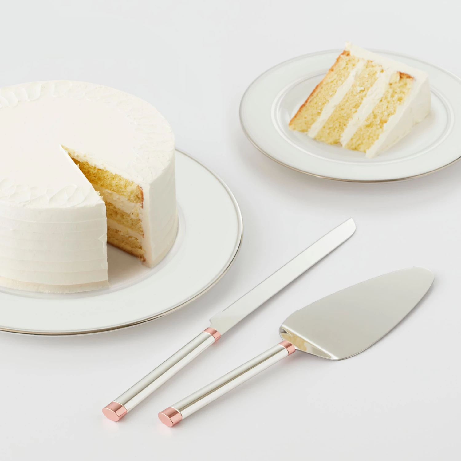 Because the special day should be nothing but rosy, the Rosy Glow Collection adds a piece of glam to that day. This 2-piece dessert set is crafted from durable metallics with silver-plating.
