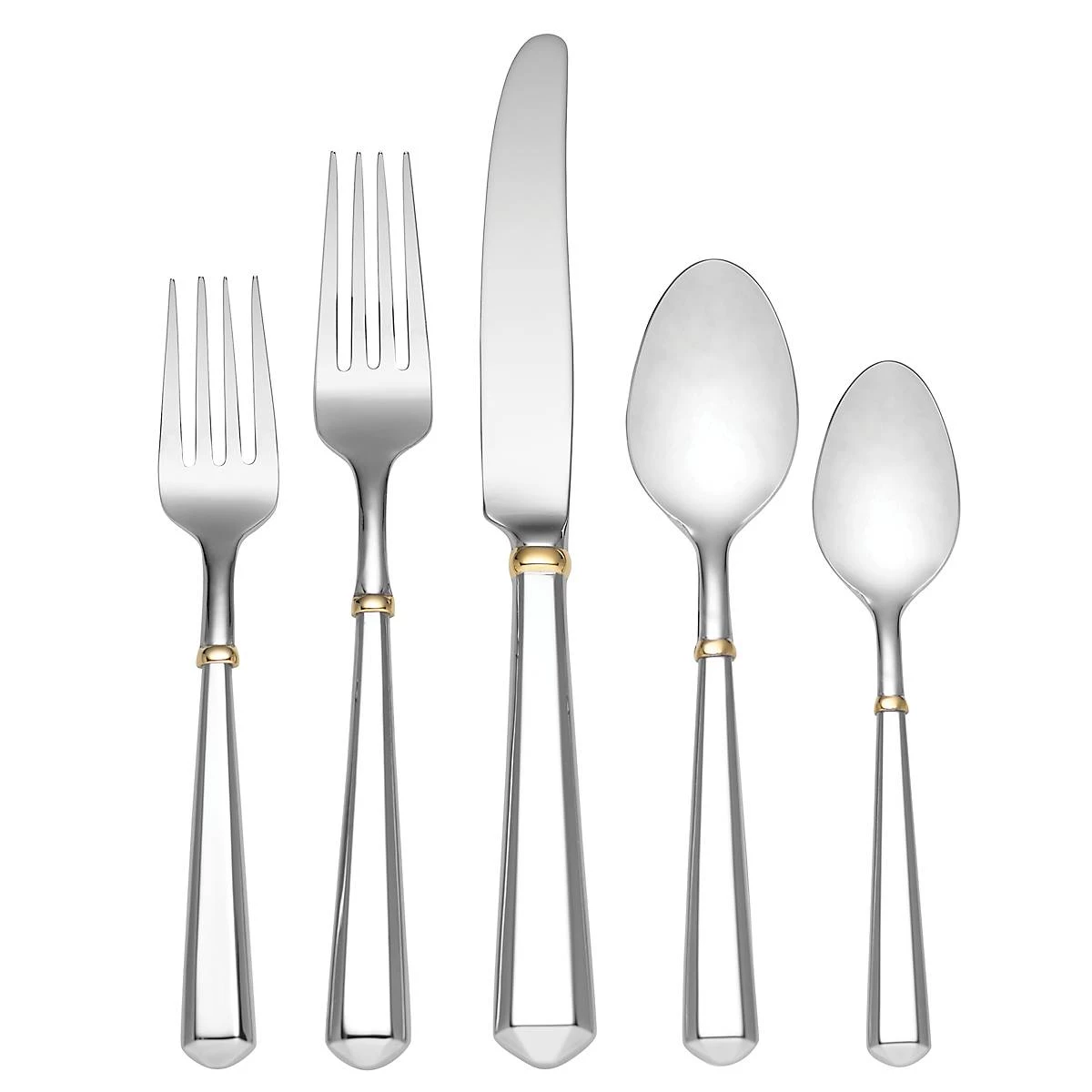 Subtle gold accents give this faceted stainless steel flatware collection a special shine. From Kate Spade New York, the Todd Hill Gold 5-piece flatware set is tarnish-resistant so you can enjoy it for a lifetime!